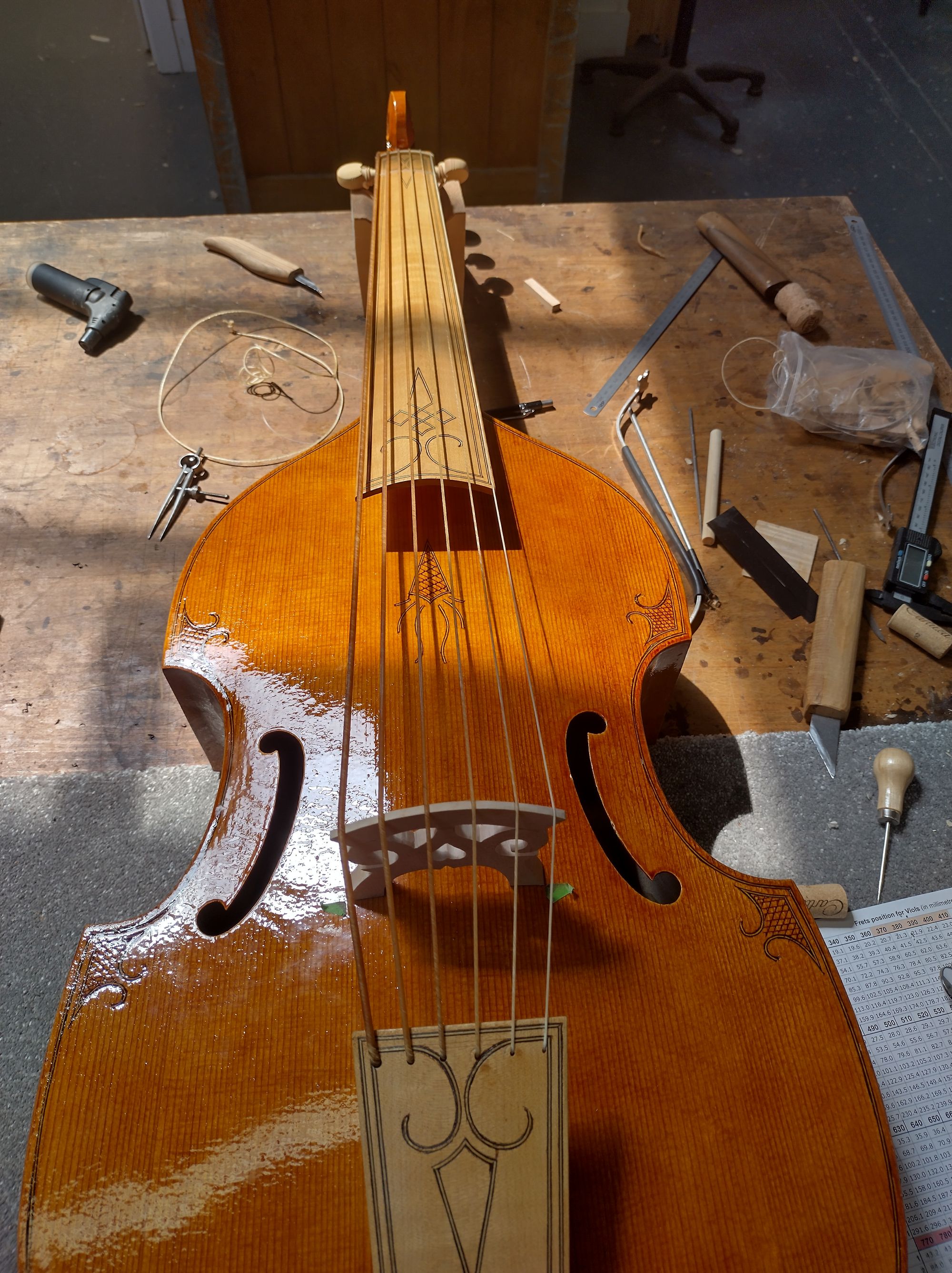 I have made a bass viol, after a 1624 original by Henry Jaye.